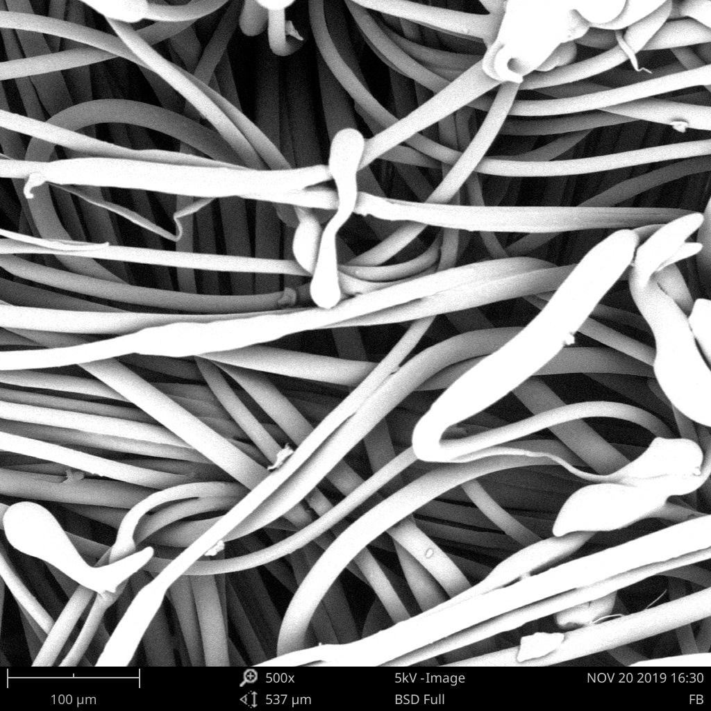 Nano-fibre treatment involves the application of a web-like layer of fibres with diameters smaller than 0.5 μm. This thin layer is applied to the surface of standard spunbonded media, enabling a combination of low emissions and high air flow rate.